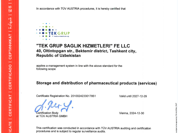 «Tek Grup Saglik Hizmetleri» MCHJ XK